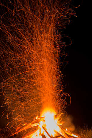 Big flame with many sparks in the dark