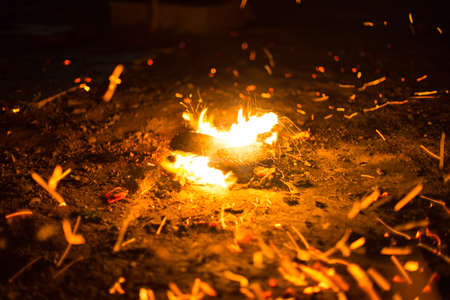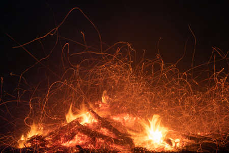 sparkles from the fire at night, closeup of photo