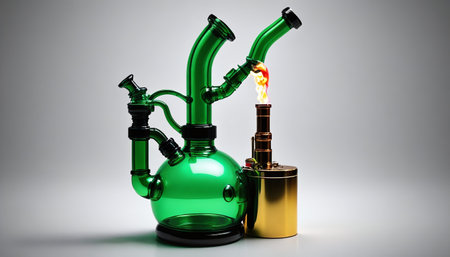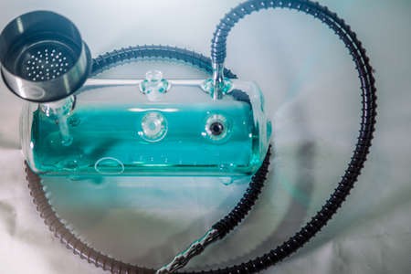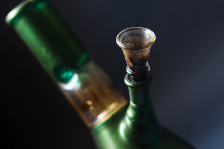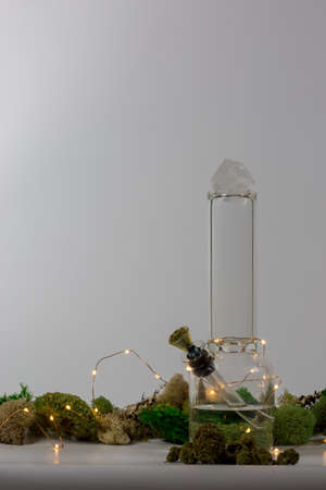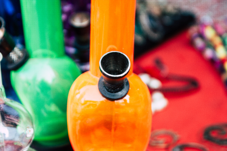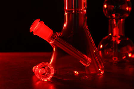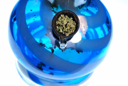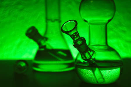 Closeup of a glass modern bong with marijuana