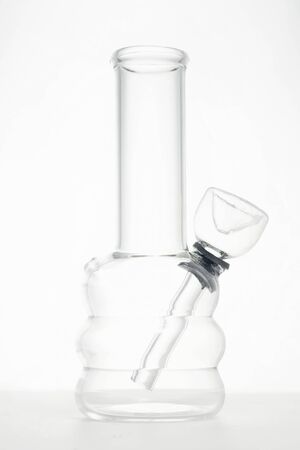clear glass water bong pipe for smoking medical marijuana or cannabis in white studio background