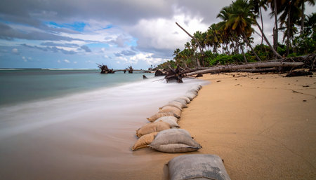 A long exposure captures the gentle motion of waves washing over a wild, remote tropical beach.