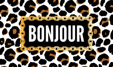 Decorative BONJOUR HELLO slogan Text with Leopard Skin Background