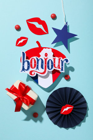 You had me at Bonjour lettering card in french. Inspirational inscription in french. Vector lettering card