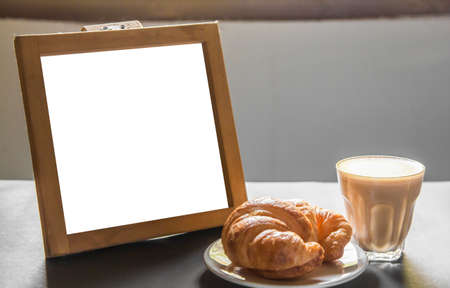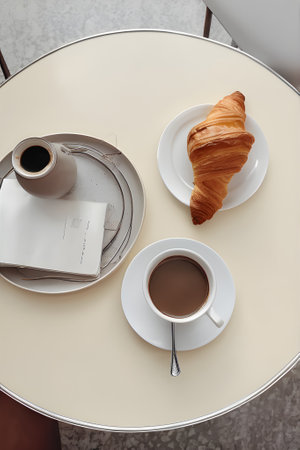 Bakery Bliss: Coffee and Croissant on White Table in Minimal Style