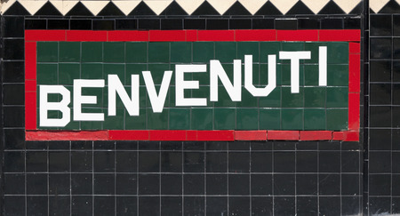 Vintage North Beach San Francisco tile wall with BENVENUTI welcome greeting.