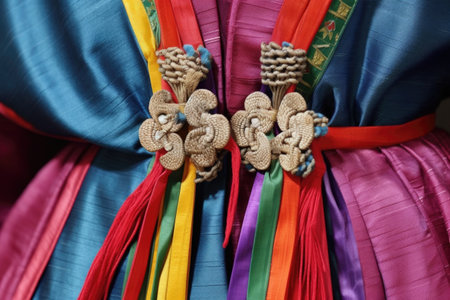 detailed view of traditional knot closures on a hanbok, created with generative ai