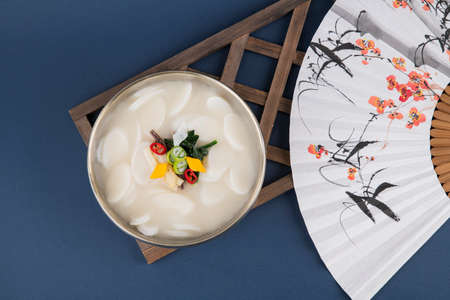 Korean food rice cake soup, tteokguk, Sliced ??Rice Cake Soup