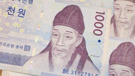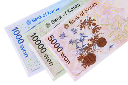 The currency of Korea which is used to represent value in exchange and the won is the main currency of Korean people. Korean won notes for money concept background.