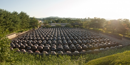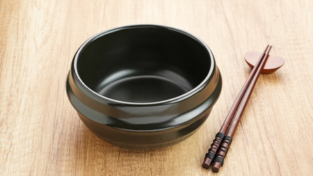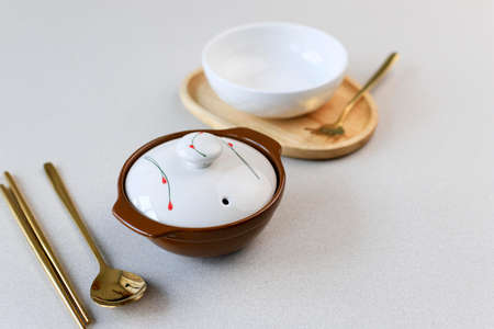 Traditional Korean Clay Pot Ttukbaegi on Wooden Table