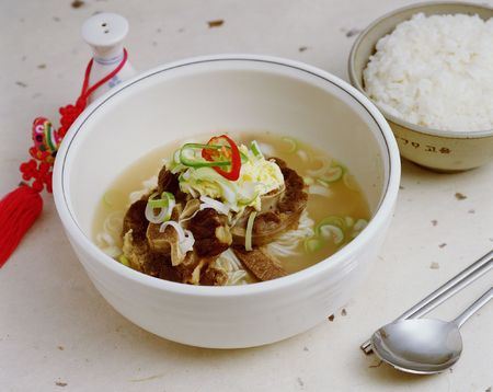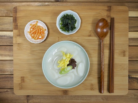 Korean food rice cake soup, tteokguk, Sliced Rice Cake Soup