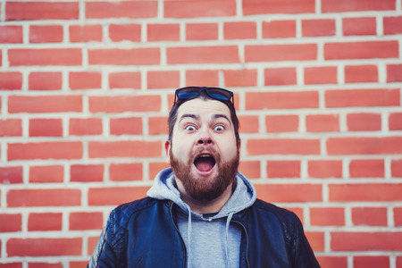 People and emotions - man with beard surprised about something