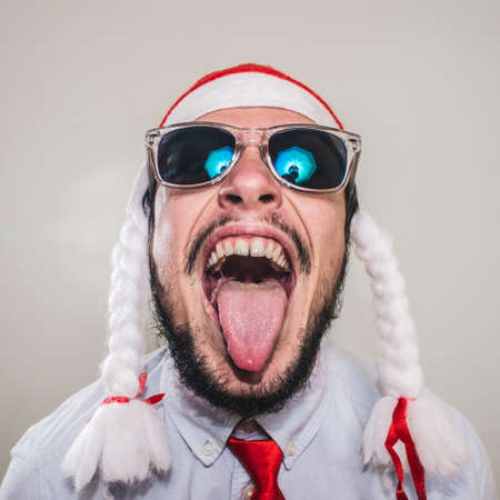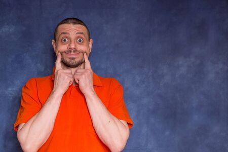 Funny man portrays a fool. Male European 40 years old. Fool's day concept.