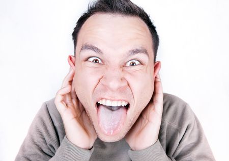 The Scream. Portrait of funny man screaming.