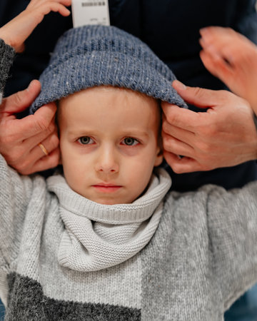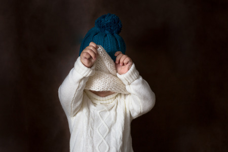 funny cute kid in knitted hat