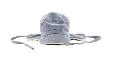 Children's warm hat with a balabon on a blue background