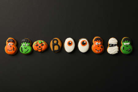 Concept of Halloween sweets, funny sweets, top view