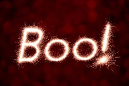 Halloween Message Boo! written with Sparkle firework over red background