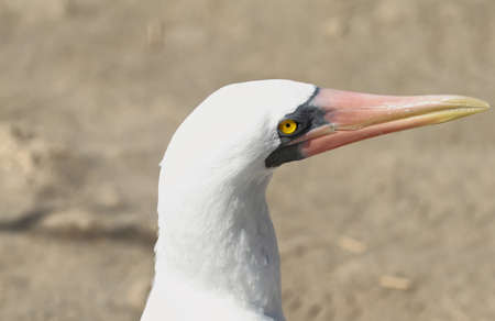 Nazca booby, Sula granti, is a large white seabird, with black face mask, living on Galapagos Islands in the pacific ocean, formerly known as masked booby. Ecuador, South America
