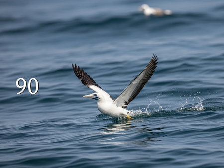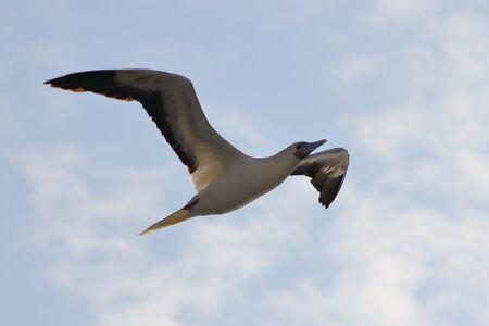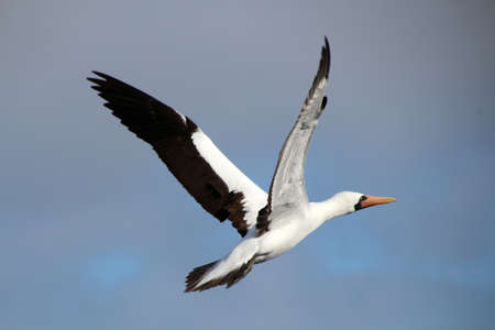 Masked booby or Nazca booby while flying, Galapagos Island, Ecuador, South America