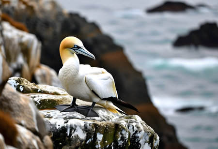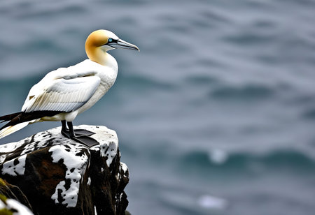 Northern gannet (Morus bassanus) sitting on a rock