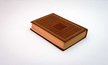 close up.thick closed book on white background