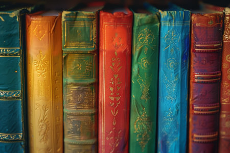 This image features a collection of vintage book spines set against a warm library backdrop. The scene captures the essence of literature's history and the joy of reading.