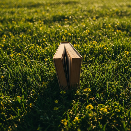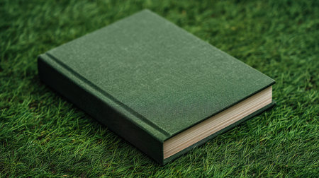 A single green book positioned on lush grass, representing serenity and nature. Ideal for themes of learning, creativity, and sustainable living inspirations.