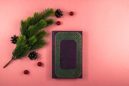 Open book on a pink background. Mock up with education and reading concept. Literature for learning, development and joy