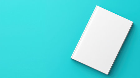 Blank white book cover on a bright blue background, ready for custom branding, publishing, or editorial projects.