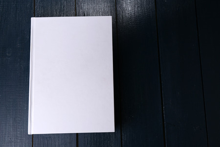 Book with blank cover on wooden background