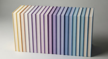 A collection of thin, rectangular items displaying a spectrum of pastel colors.
