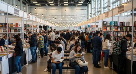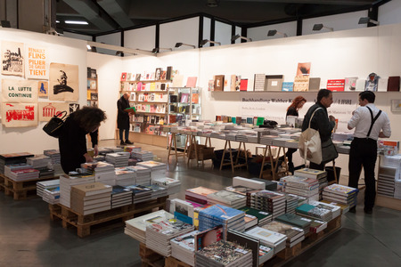 MILAN, ITALY - MARCH 28: People visit bookstore at Miart, international exhibition of modern and contemporary art on MARCH 28, 2014 in Milan.