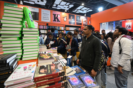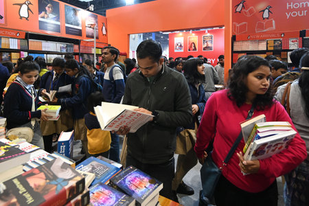 NEW DELHI, INDIA -FEBRUARY 10: People at World Book Fair on the first day of inauguration, on February 10, 2024 in New Delhi, India. This edition of the book fair is spread over 50,000 sq meters and is set to be the biggest book fair with more than 1000 p