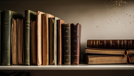 Intricate Histories: Close-Up of Aged Book Covers