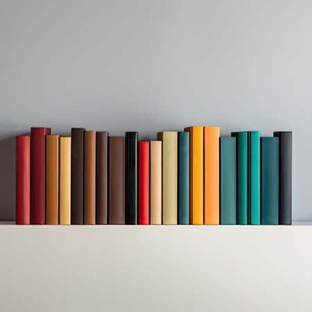 A diverse collection of books showcases different genres, creating a visually appealing arrangement on a minimalist white backdrop.