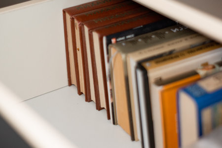 one column cabinet cupboard unit filled with books professional photography