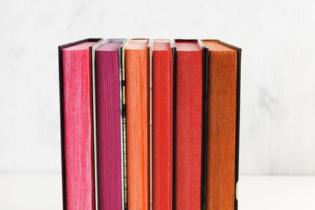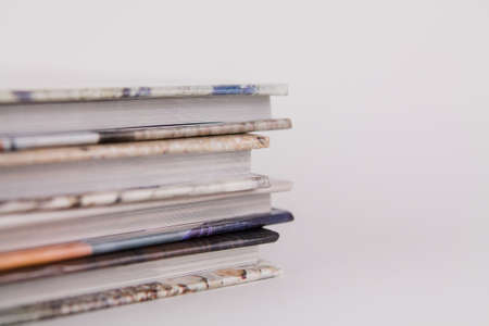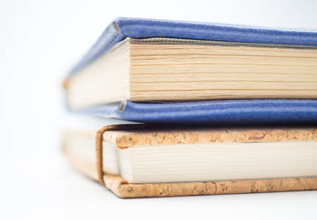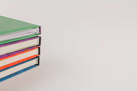 Close-up side view of stack of book on the white background