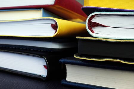 Close up of lot of notepads and diaries. Memories and learning concept.