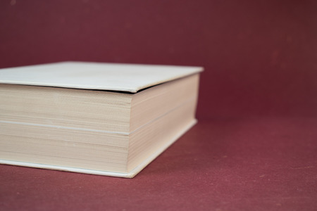 White blank hardcover book on red background. White book pages