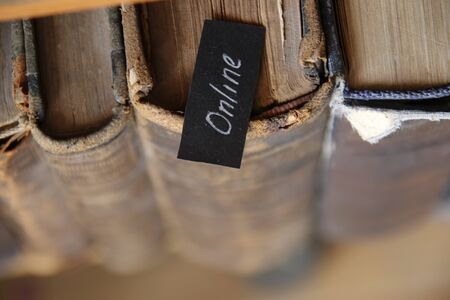 Stack of old book on table.Concept : work and learn from home.
