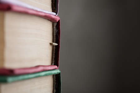 Stack of old books close up abstract background