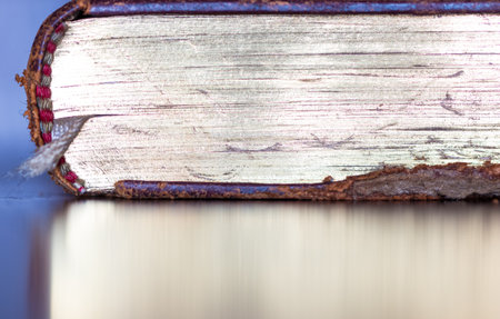 old book binding and page, close up photo