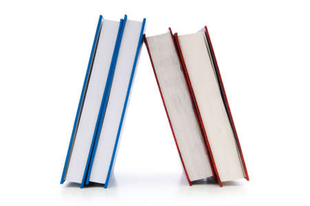 Close-up side view of stack of book on the white background