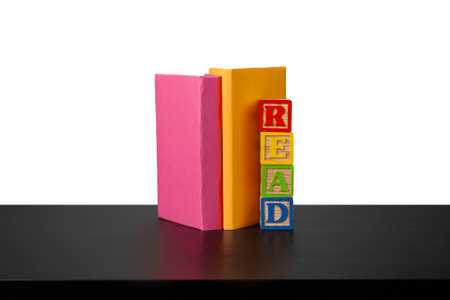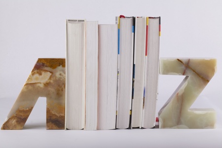 Books on a white background and two bookends