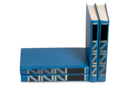 Books, white background, science and education. Reading and writing concept. Useful.