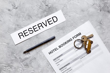 booking hotel room application form stone desk background top view mock up