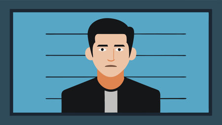 HighProfile Criminal Mug Shot A stylized mug shot of a highprofile criminal displayed on a large screen with a caption underneath reading Major Arrest..