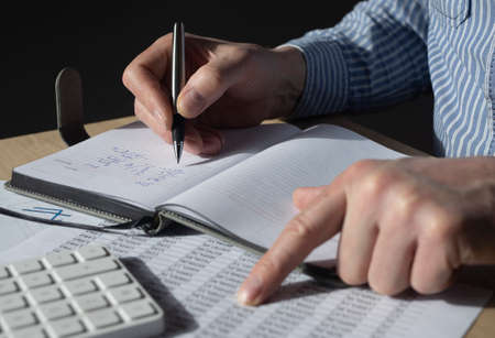 Businessman working with financial documents, accounting statistics. Tax calculations and budget concept.