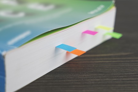 many colorful bookmarks in a magazine with the shallow depth of scene