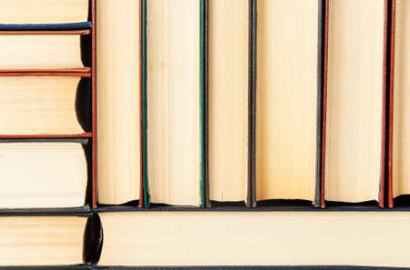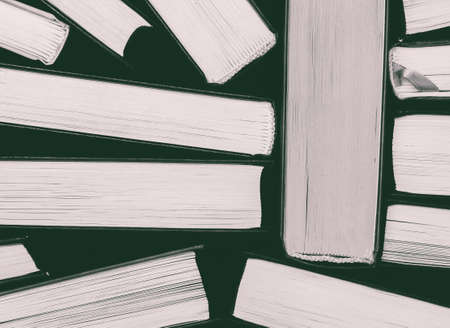 Close up of a bunch of books background with copy space minimal and reading concept